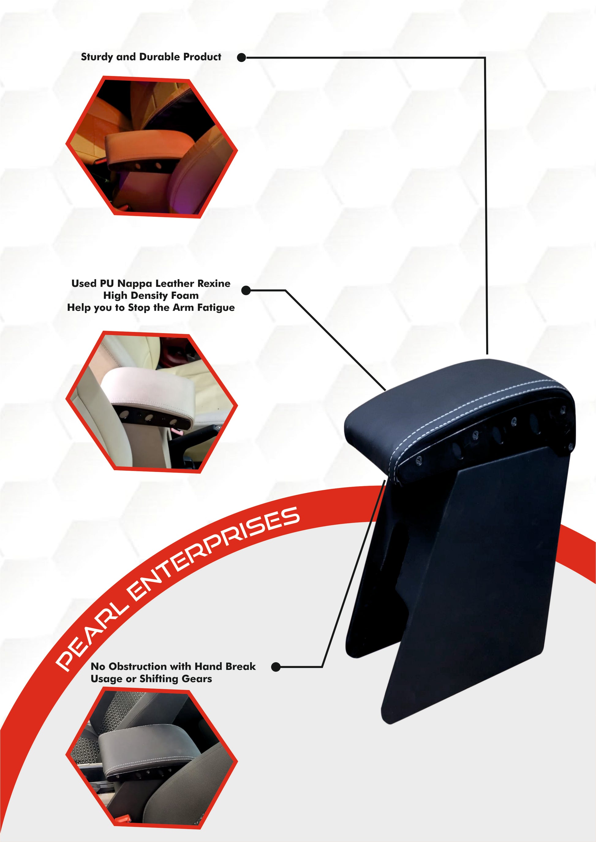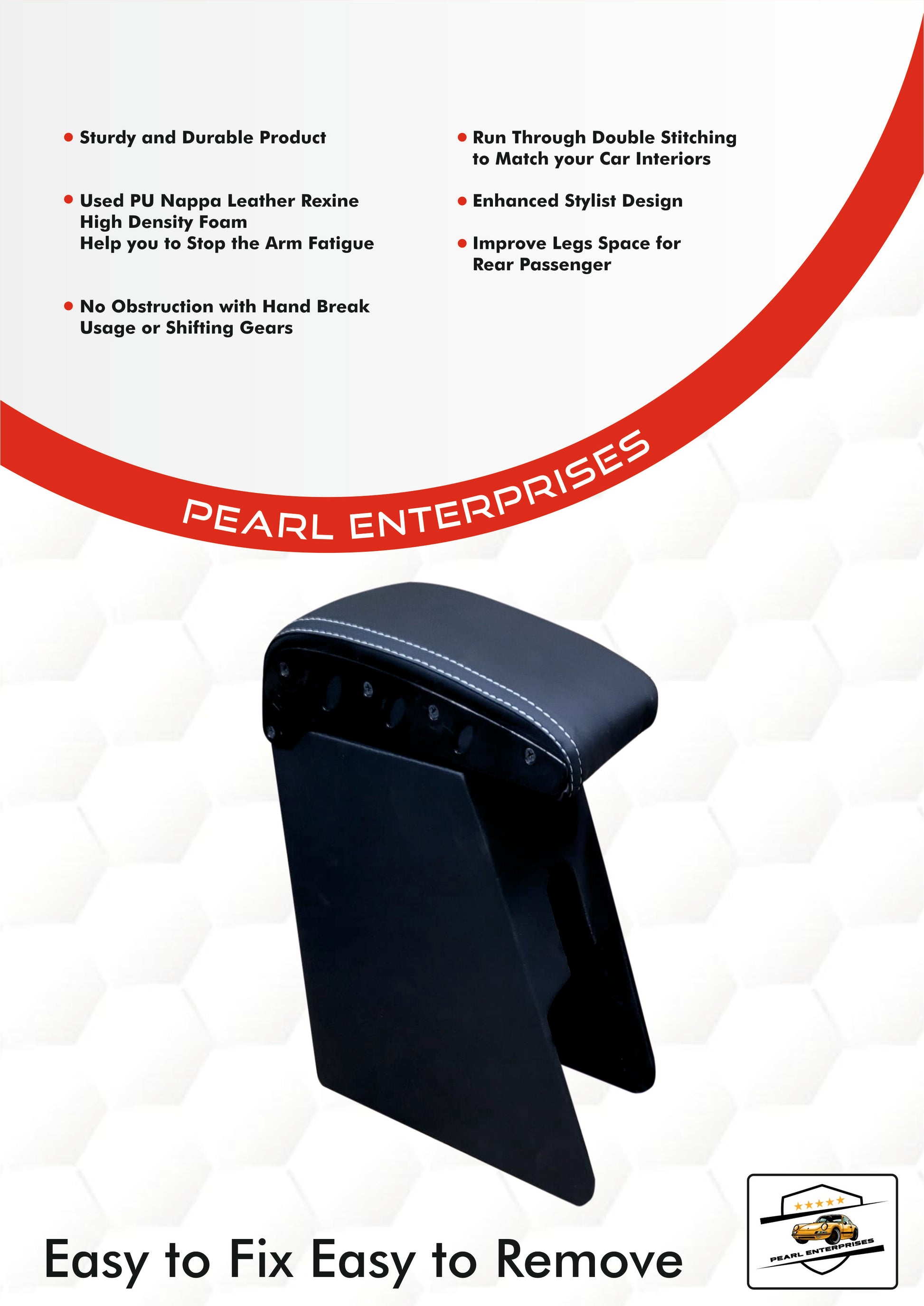 Add convenience and comfort to your Ertiga (2019 to 2021) with this ergonomically designed Armrest Console from Pearl Enterprises. Built for a perfect fit, this accessory combines practical functionality with sleek aesthetics.