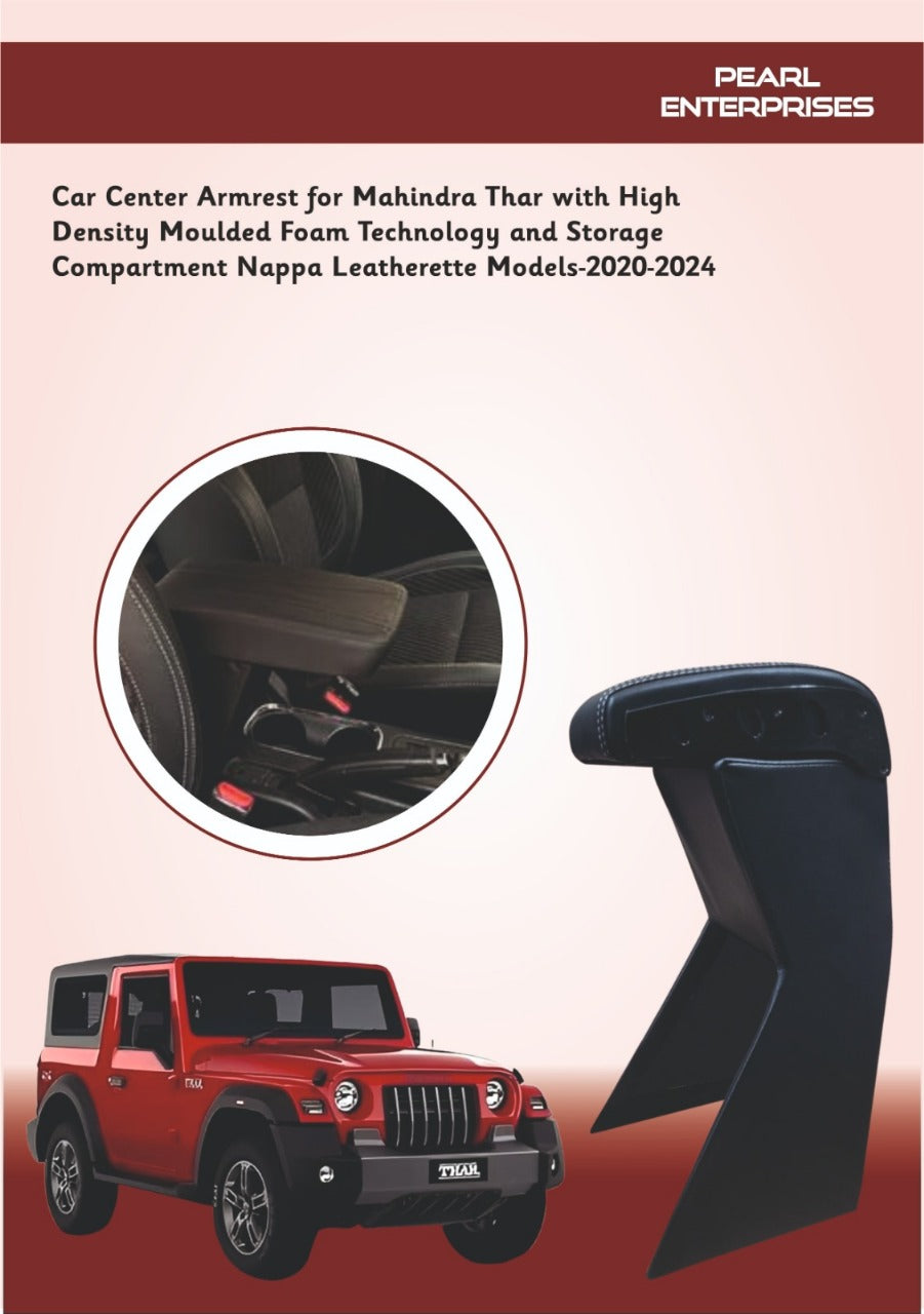 Mahindra Thar Armrest with Storage – Premium Leatherette (2020–2024)