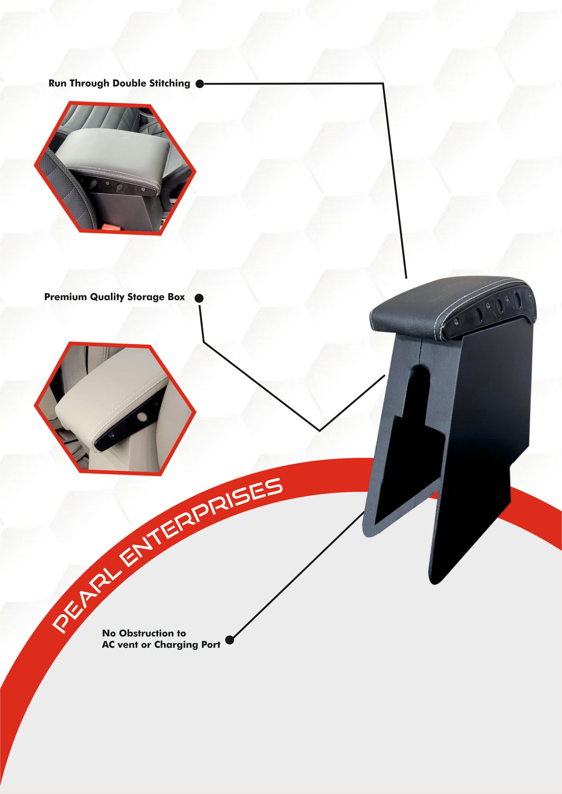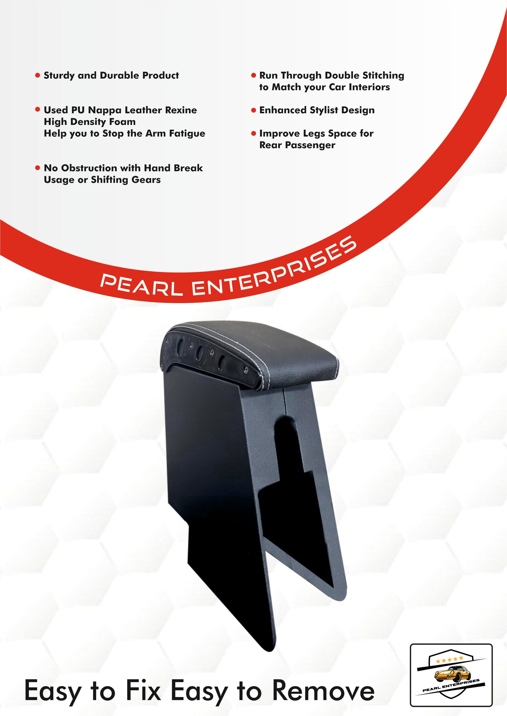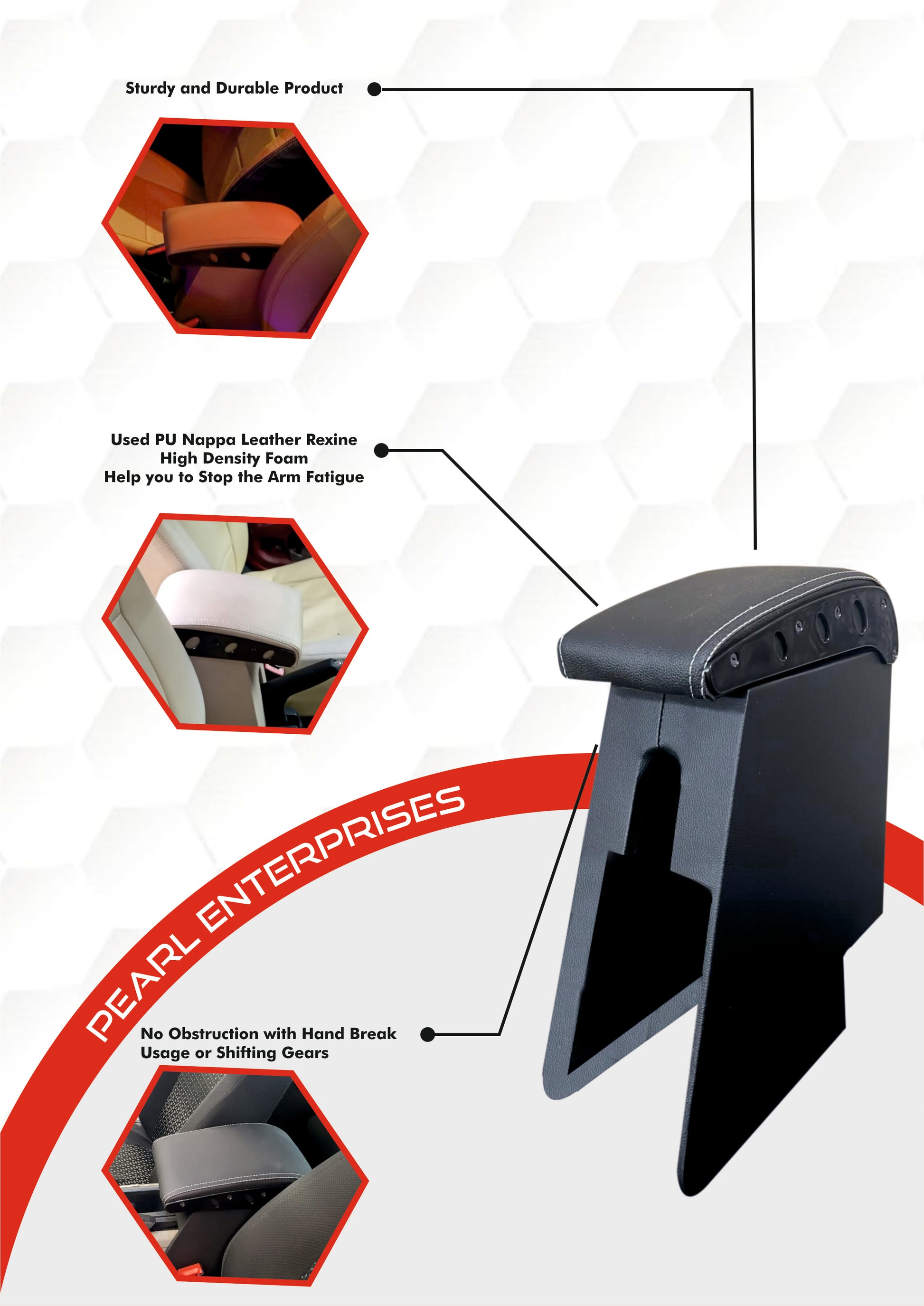 Pearl Enterprises Armrest Compatible with The Old Thar Car Armrest, PU Nappa Leather, High Density Foam, Easy Installation, Black