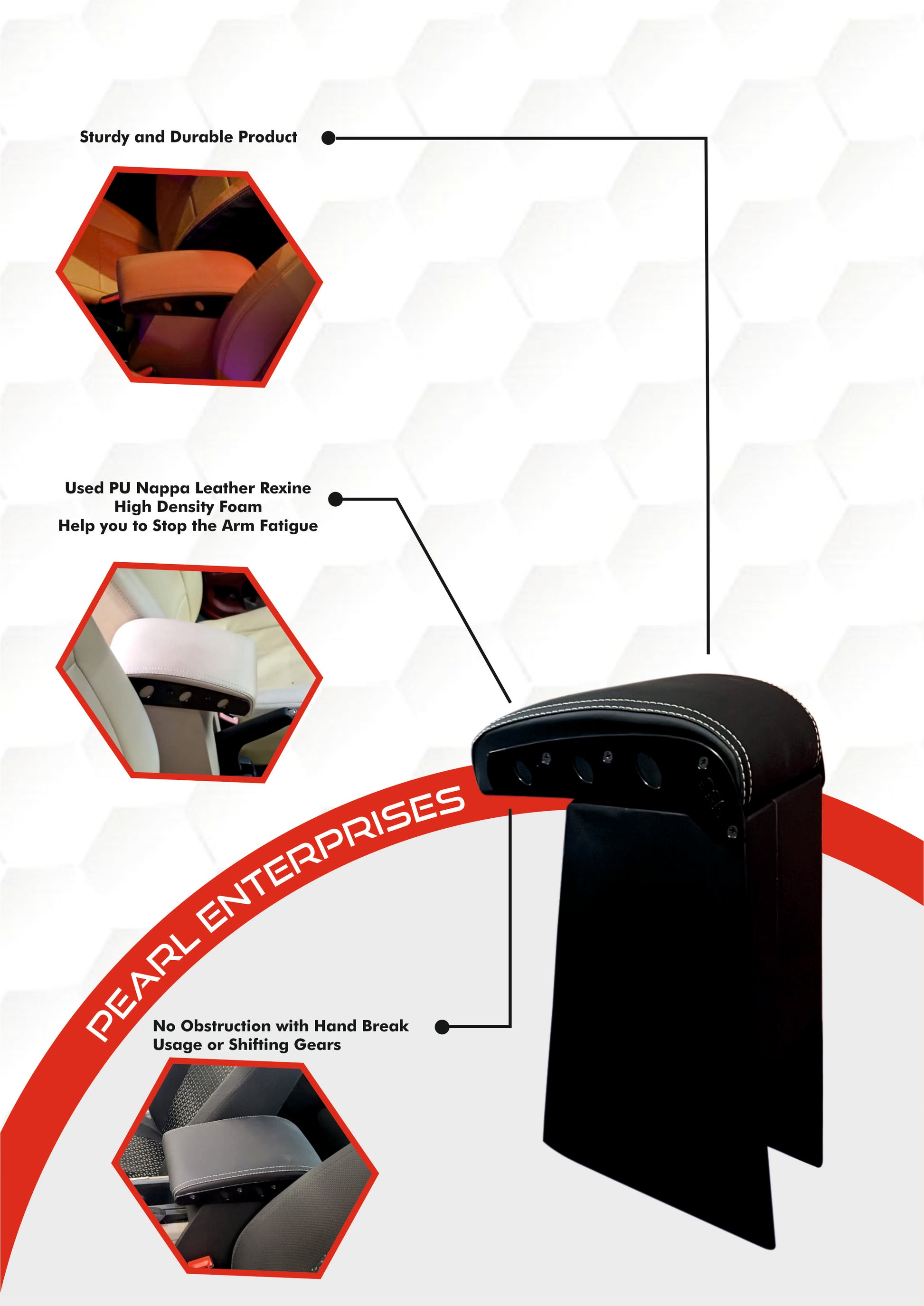 Enhance your driving comfort with the custom-designed Armrest Console for TATA Punch by Pearl Enterprises. This product is specifically engineered to fit the TATA Punch and brings luxury, utility, and ergonomic support in one stylish package.